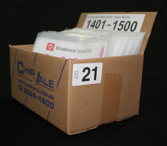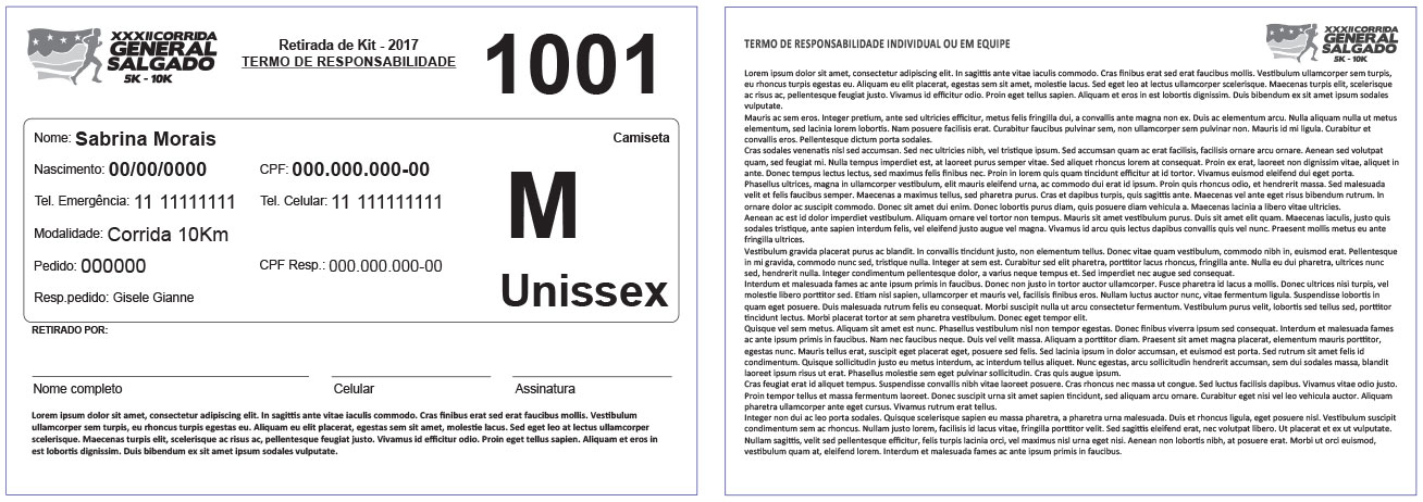 que permite rápida conferência dos dados. Podemos incluir itens opcionais, para agilizar a entrega do kit, como a pulseira de elite, termo de responsabilidade, cupons, etc.